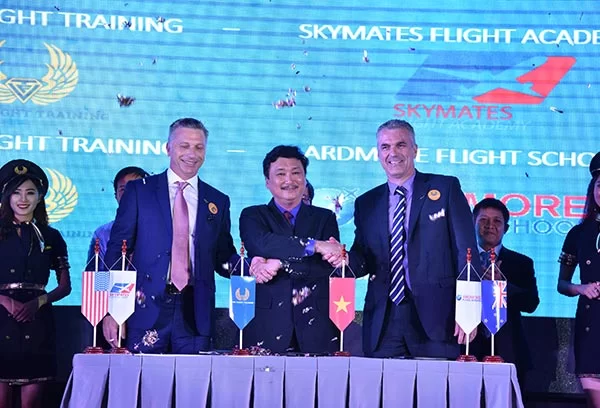 LỄ KÝ KẾT HỢP ĐỒNG HỢP TÁC VỚI 02 ĐỐI TÁC TRƯỜNG BAY MỚI LÀ ARDMORE FLYING SCHOOL & SKYMATES FLIGHT ACADEMY với sự chứng kiến của Chủ tịch HĐQT Vietnam Airlines – Ông PHẠM NGỌC MINH và Chủ tịch HĐQT Công ty CP Đào tạo Bay Việt – Ông PHAN XUÂN ĐỨC