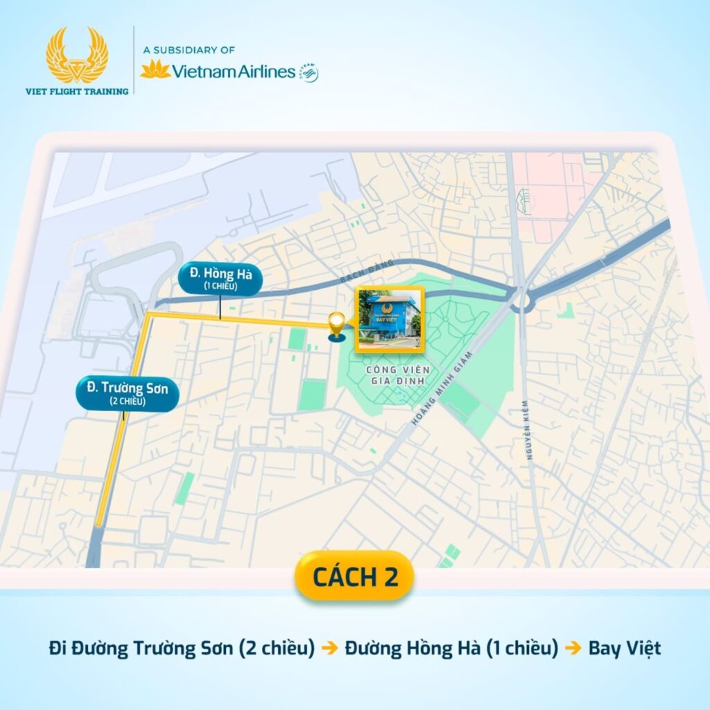 Cách 2: Từ Đường Trường Sơn (2 chiều) → Đường Hồng Hà (1 chiều) → Bay Việt