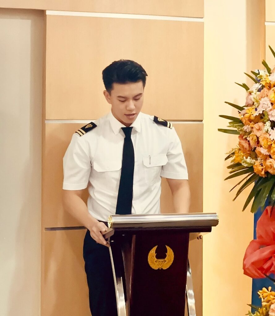 Học viên Châu Lâm Gia Hưng, đại diện cho toàn thể học viên, gửi lời tri ân đến các Thầy Cô giáo Trường Phi công Bay Việt