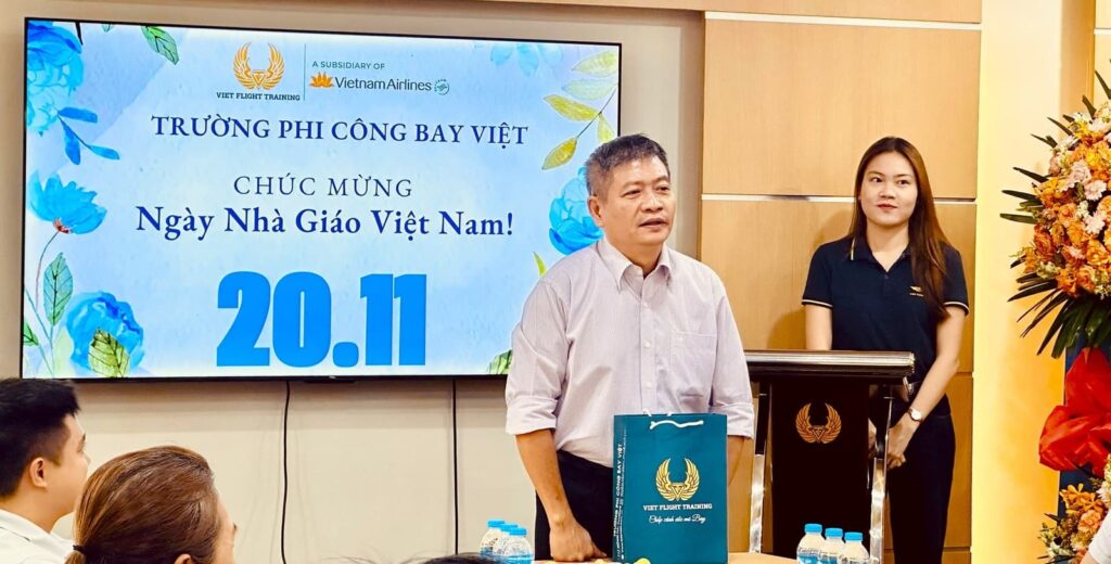 Nhân dịp Ngày Nhà giáo Việt Nam 20/11, Trường Phi công Bay Việt (VFT) đã tổ chức Lễ tri ân Thầy Cô tại Trụ sở chính TP.HCM trong không khí ấm áp và thân tình. Buổi lễ có sự tham dự của các Giáo viên, cán bộ nhân viên, học viên và đặc biệt là sự hiện diện của Cơ trưởng Tô Ngọc Giang – Phó Tổng Giám đốc Vietnam Airlines, Chủ tịch HĐQT VFT, và Cơ trưởng Đỗ Trí Dũng – Tổng Giám đốc, Hiệu trưởng Trường Phi công Bay Việt.