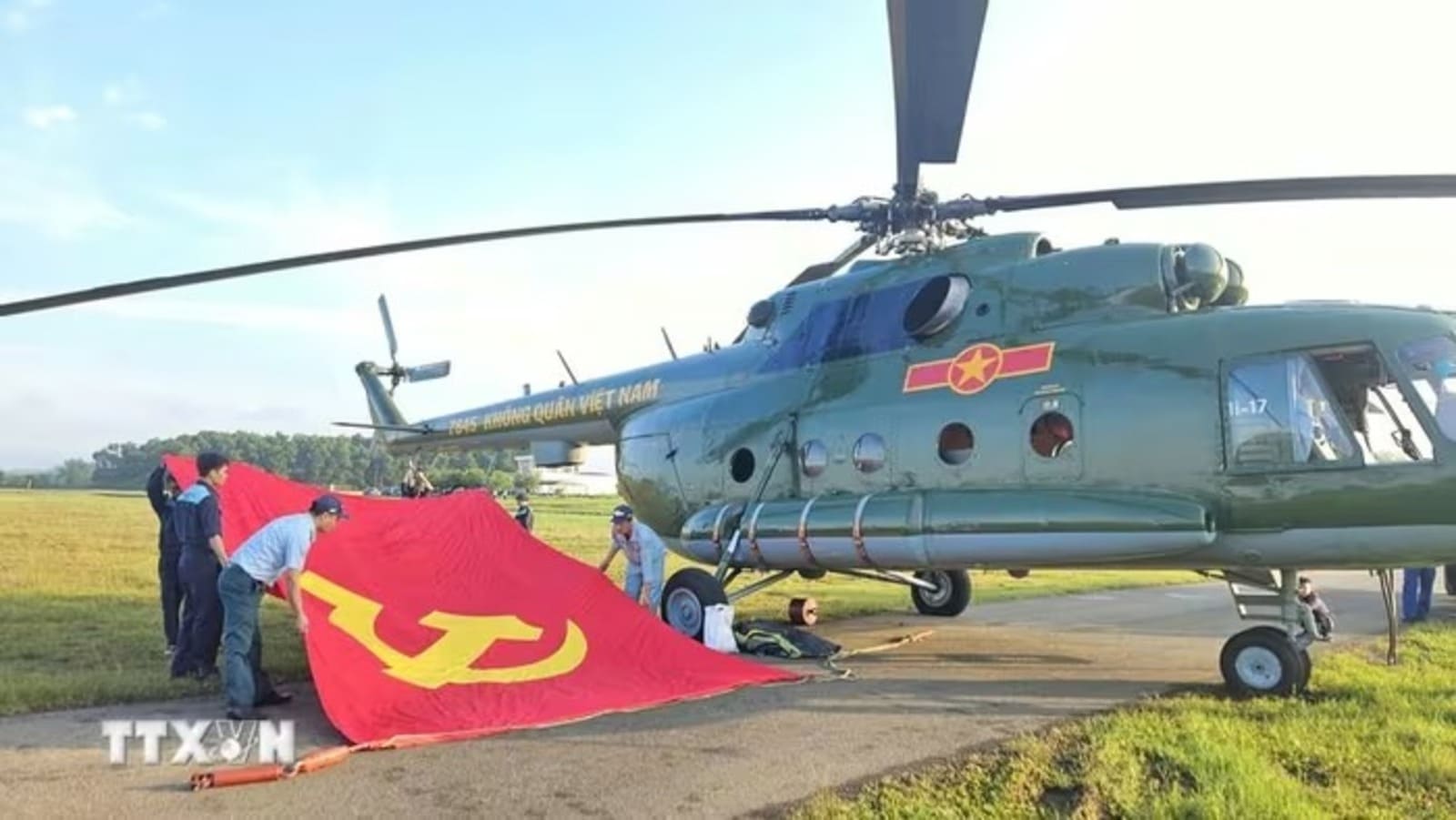 Sáng 20/8/2025, tại sân bay Hòa Lạc, các máy bay trực thăng của các đơn vị thuộc Quân chủng Phòng không – Không quân đã treo cờ Đảng, cờ Tổ quốc lên thân máy bay, luyện tập bay ghép hình.