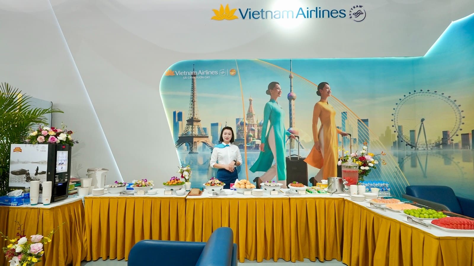 Giữa không gian nhộn nhịp của Triển lãm thành tựu đất nước “80 năm hành trình Độc lập – Tự do – Hạnh phúc”, Vietnam Airlines mang đến trải nghiệm đặc biệt khi tái hiện Phòng khách Bông Sen chuẩn 5 sao quốc tế