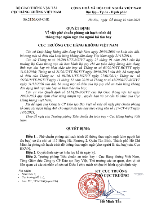 PHÊ CHUẨN PHÒNG SÁT HẠCH TIẾNG ANH CHO NGƯỜI LÁI